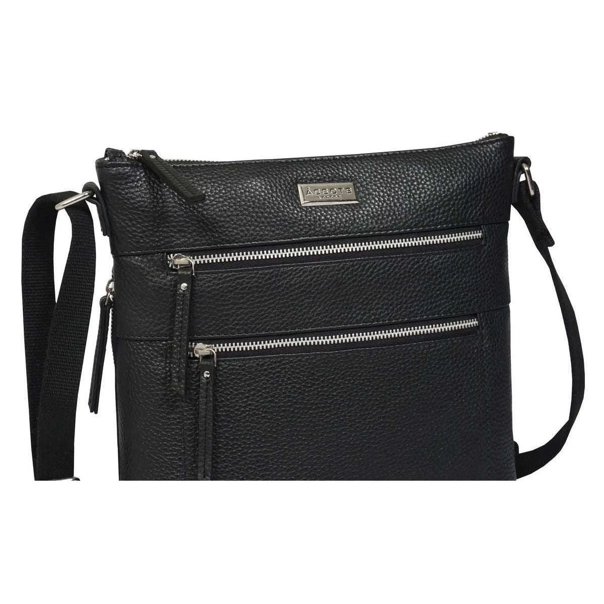 This women’s cori pebble grain crossbody bag by the brand Assots London is made from 100% pebble grain leather and is showcased in black. It measures 25cm(height) x 26cm(width) x 4cm(depth). All the bags come complete with assots london packaging. The Assots London Cori Pebble Grain Crossbody Bag – Black is a sleek and lightweight accessory, perfect for everyday use. This elegant bag is delicately handcrafted with real leather in a simple yet stylish design. The spacious main compartment is lined with a cotton fabric and is secured by a zip top closure. It conveniently has two zip pockets at the front, one at the side and also at the back for extra storage and quick access to valuables such as keys. The easy adjustable shoulder strap makes it hands free and comfortable to carry all day.