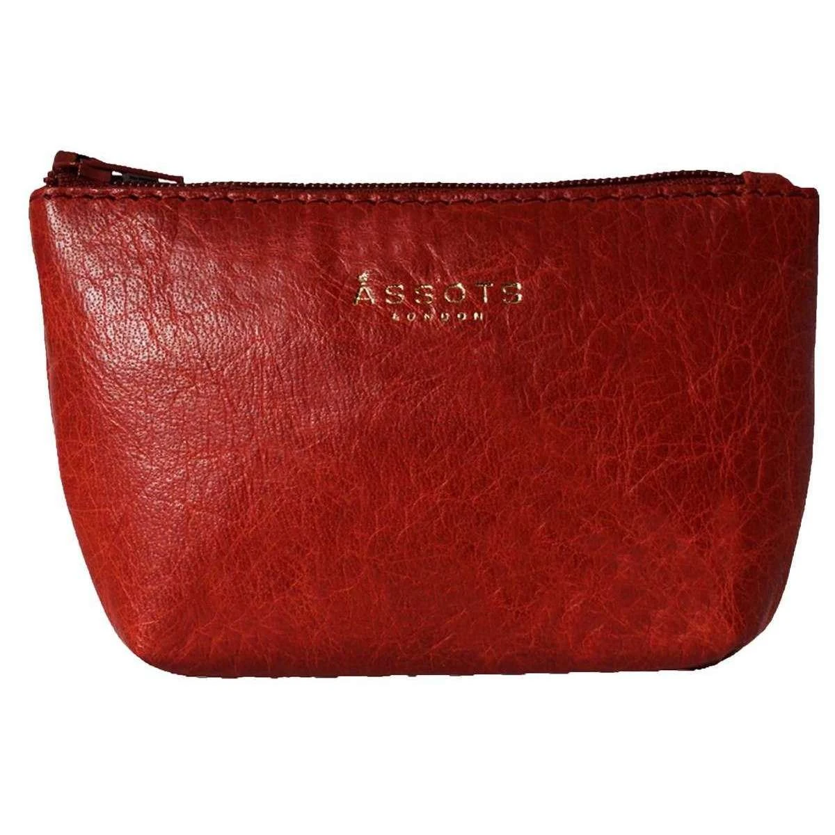 Manufactured from 100% full grain leather is this red women’s diana full grain leather coin purse by the designer Assots London. It measures 8.5cm(height) x 13cm(width) x 2cm(depth). All the purses come complete with assots london packaging. The Assots London Diana Full Grain Leather Coin Purse – Red will fit perfectly into your daily bag. This mini modest purse is delicately handcrafted with long-lasting vintage leather which overtime develops a unique rich patina. It is finished with a sturdy zip-top closure which secure valuables stored in the fully lined central compartment. The lining is designed in same colour as the exterior. This exclusive accessory is adorned with a mesmerizing Assots London golden foil logo in the front.