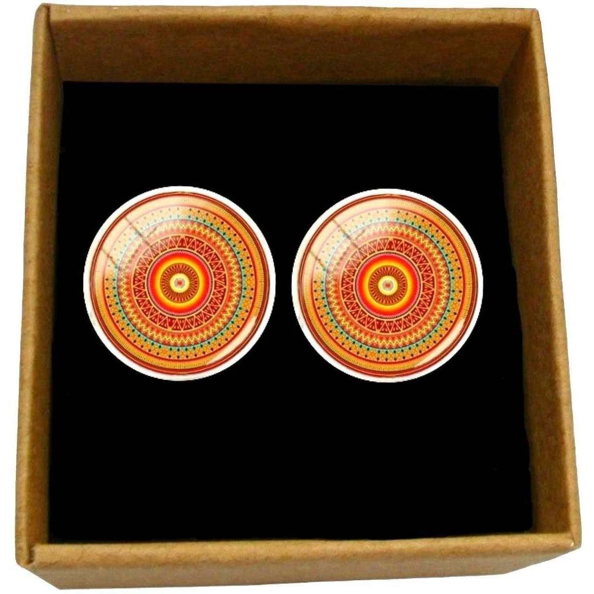 Introducing these men’s bohemian swirl cufflinks by Bassin and Brown, they are manufactured from rhodium plate and photo glass cabochon in a orange/red/green colour. All the cufflinks come complete in a bassin and brown presentation box. The Bassin and Brown Bohemian Swirl Cufflinks – Orange/Red/Green will make a great choice for those special occasions thanks to its eye-catching design. These cufflinks are a fine pair that are certain to impress while looking very stylish on your cuff. Attaching them and taking them off are made effortless thanks to their swivel back which will ensure your cuffs are secured perfectly.
