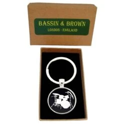 Using black rhodium plated metal and glass cabochon, this drum kit key ring by Bassin and Brown is perfect for men and a must have. It measures 6cm(length). All the keyrings come complete with bassin and brown packaging. The Bassin and Brown Drum Kit Key Ring – Black/White is perfect for holding your keys stylishly and safely together. Light weight and comfortable, this Drum Kit keyring is beautifully detailed and encased in a round glass cabochon fitting. Approximately 28mm in diameter and perfect for everyday carry, this keyring is sturdy and durable. Elevate your keyring game and highlight your unique taste with this stylish piece. Makes the perfect gift for any occasion.
