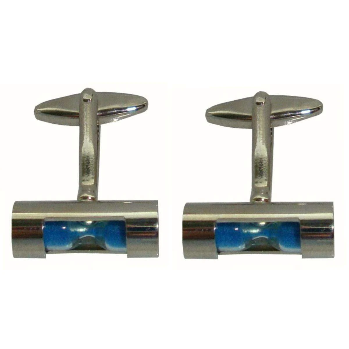 Brought to you by the brand Bassin and Brown, these blue/silver men’s hourglass cufflinks are made from rhodium plate. All the cufflinks come complete in bassin and brown recyclable cufflinks box. The Bassin and Brown Hourglass Cufflinks – Blue/Silver feature two small ovals of blue sand connected by a narrow neck which allows the sand to trickle from one end to the other. Uniquely designed, these are ideal for those gentlemen who love time. Finished off with a swivel t-bar mechanism, making them easy to add and remove from your attire.