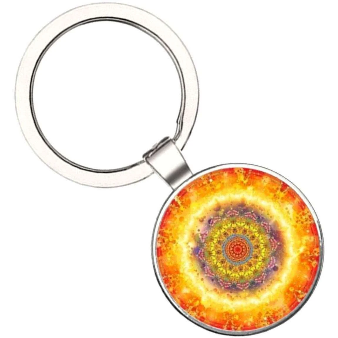 Manufactured from glass cabochon and silver rhodium plate is this yellow/orange unisex kaleidoscope flower key ring by the designer Bassin and Brown. It measures 6cm(height). All the keyrings come complete in a bassin and brown presentation box. The Bassin and Brown Kaleidoscope Flower Key Ring – Yellow/Orange will make a superb addition to your set of keys, adding a little flair to the cluster. Its novelty design offers a little excitement making it an ideal choice of gift for yourself or a loved one.