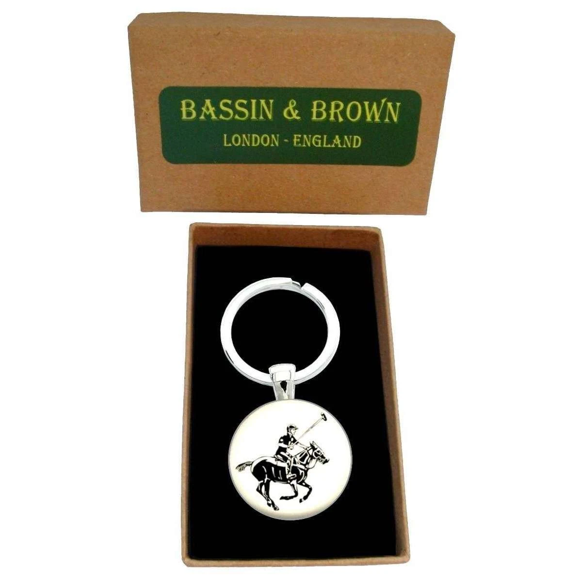 This men’s polo player key ring by the brand Bassin and Brown is made from rhodium plated metal and glass cabochon and is showcased in white. It measures 6cm(length). All the keyrings come complete with bassin and brown packaging. The Bassin and Brown Polo Player Key Ring – White/Black is perfect for holding your keys stylishly and safely together. Light weight and comfortable, this Polo Player keyring is beautifully detailed and encased in a round domed glass cabochon fitting. Approximately 28mm in diameter and perfect for everyday carry, this keyring is sturdy and durable. Elevate your keyring game and highlight your unique taste with this stylish piece. A sporty gift for Father’s Day or Birthday.