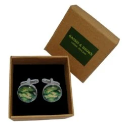 Using green rhodium plate, these round camouflage cufflinks by Bassin and Brown are perfect for men and a must have. It measures 1.6cm(diameter). All the cufflinks come complete in bassin and brown recyclable cufflinks box. The Bassin and Brown Round Camouflage Cufflinks – Green would be the ultimate gift for the forces man. Being highly detailed, they will be certain not to disappoint anyone. Easy to add and remove from your attire with their swivel t-bar mechanism.