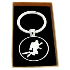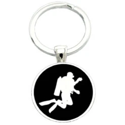 This men’s scuba diver key ring has been made from rhodium plated metal and glass cabochon, featured in a black colour and is from the brand Bassin and Brown. It measures 6cm(length). All the keyrings come complete with bassin and brown packaging. The Bassin and Brown Scuba Diver Key Ring – Black/White is perfect for holding your keys stylishly and safely together. Light weight and comfortable, this Scuba Diver keyring is beautifully detailed and encased in a round cabochon fitting. Approximately 28mm in diameter and perfect for everyday carry, this keyring is sturdy and durable. Elevate your keyring game and highlight your unique taste with this stylish piece. A thoughtful gift for deep-sea diving enthusiasts.