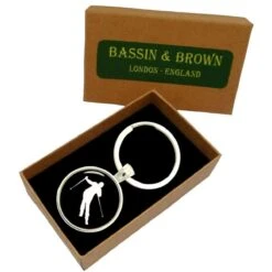 Manufactured from glass cabochon and rhodium plate is this black/white men’s skier keyring by the designer Bassin and Brown. It measures 6cm(length). All the keyrings come complete in a bassin and brown presentation box. The Bassin and Brown Skier Keyring – Black/White features a shiny polished finish front and textured back for a simple design. This silhouette design will be certain to impress those who have a love for skiing or winter sports. Make this a must have to add to your set of keys.