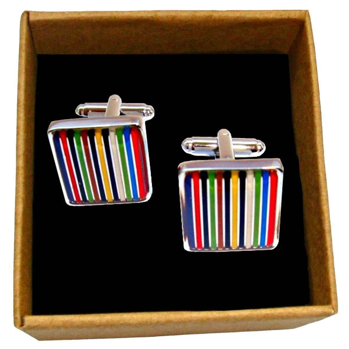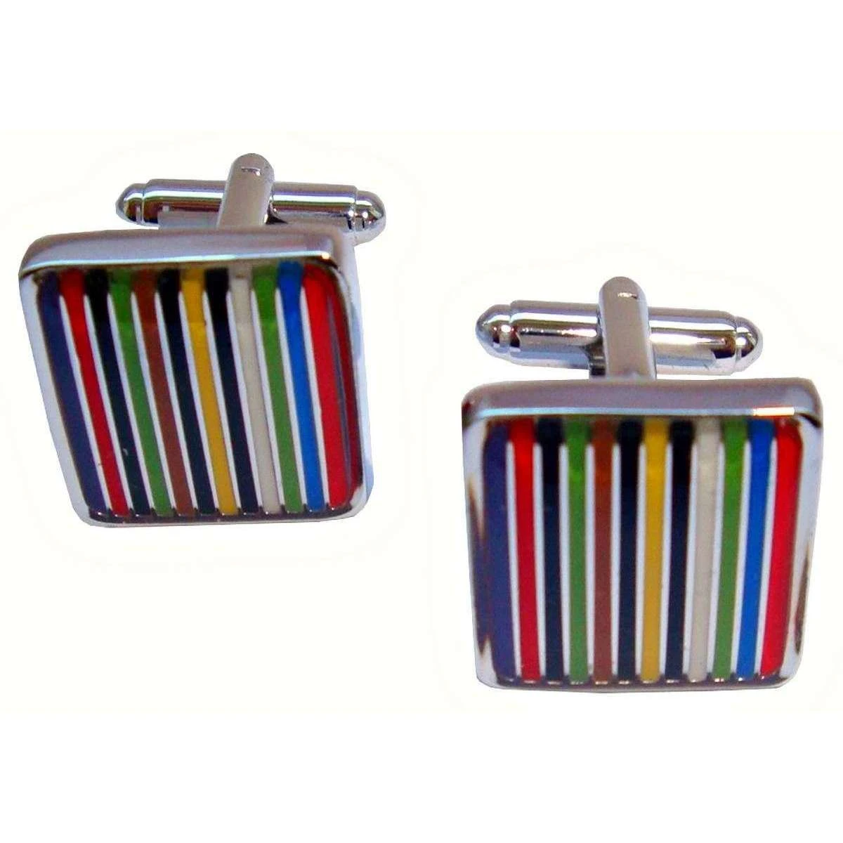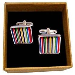 These well made men’s striped enamel cufflinks from Bassin and Brown come in a multi-colour colour and are manufactured from rhodium plated metal and enamel. All the cufflinks come complete with bassin and brown packaging. The Bassin and Brown Striped Enamel Cufflinks – Multi-colour are the perfect personal decoration for any shirt. With multi coloured striped enamel, you can add an element of style to your outfit. These striking cufflinks are beautifully detailed and feature a swivel back fitting design that makes adding and removing from shirts easy. This item makes a great gift for the modern, stylish and fashionable man.