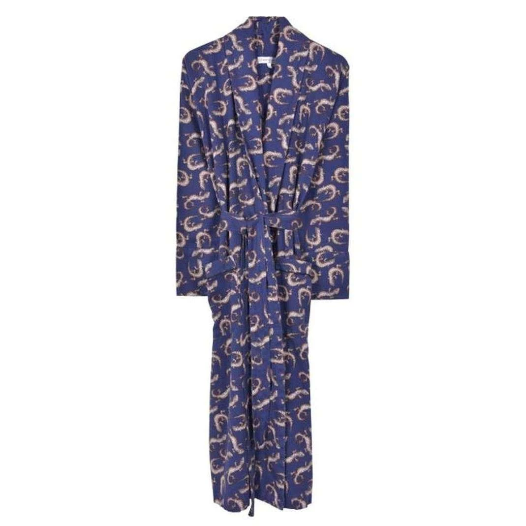 This men’s gekko lightweight dressing gown by the brand Bown of London is made from 100% cotton satin fabric and is showcased in navy. Also the navy dressing gown is designed in a unique pattern, It is recommended to wash at 40 degrees to keep this dressing gown in good condition. All the dressing gowns come complete with bown of london packaging. The Bown of London Gekko Lightweight Dressing Gown – Navy is an elegant gown which is the perfect fashion staple for the warmer months. This gorgeous piece has been designed in an alluring blue with a Gekko print and contrast piping on the cuffs, perfect for making a statement. Crafted from naturally soft, luxurious cotton, this stylish men’s lightweight robe is guaranteed to make you feel like an emperor. Luxury is key with this design so your sure to be able to lounge in complete comfort.