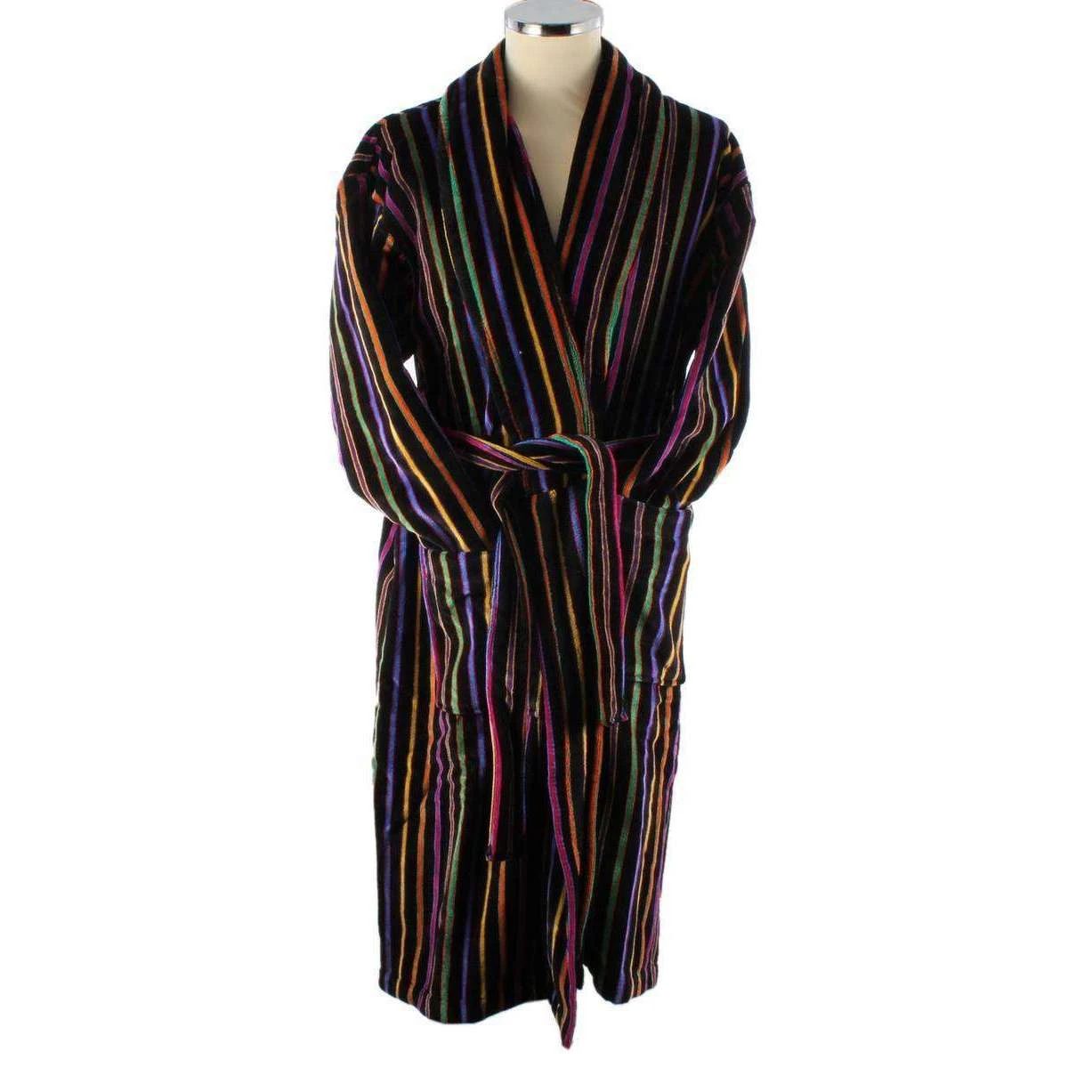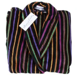 Bown of Londons Mozart dressing gown is sure to be a stylish piece of clothing that will keep you cosy during those colder winter months. Beautifully designed, this robe features a colourful striped design which will certainly stand out; ideal for that stylish gentleman. Having been luxuriously crafted from 100% of cotton velour you can be more than certain that you are provided with a robe which will keep you comfortable and snug throughout the duration of the wear. Tied with a waist rope and featuring two slip-in pockets either side this gown is perfect for lounging about the house in. Sitting at 125cm in length and coming complete with Bown of London tags, this plush dressing gown would make a thoughtful gift.