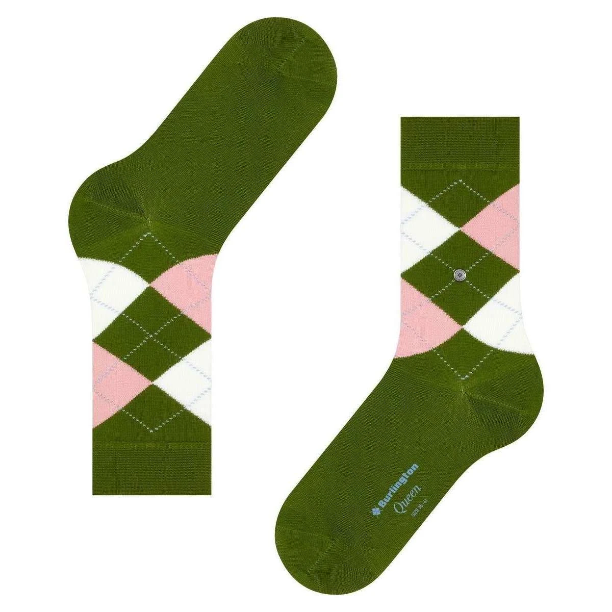 Brought to you by the brand Burlington, these fir green women’s queen socks are made from 67% cotton (organic) and 33% polyamide (20% recycled). Also the fir green socks are designed in a argyle pattern, It is recommended to wash at 40 degrees to keep these socks in good condition. All the socks come complete with burlington tags. The Burlington Queen Socks – Fir Green are colourful and fashionable combed cotton socks. They have a soft grip and are very comfortable to wear, they feature a cheerful classic argyle pattern and a signature Burlington clip and logo on the sole which stands for quality, comfort, and class. These Queen socks will be the perfect addition to your sock drawer.