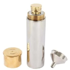 David Van Hagen brings you this beautiful, unique piece that allows you to store your favourite drink in style. Crafted from the finest stainless steel and featuring a gold plated cap, this stunning hip flask is a must for any gentlemans collection. It showcases a gun cartridge design that is certain to grab peoples attention and also includes a funnel attachment. It has a capacity of 3oz making it ideal to keep in your pocket for those special occasions.