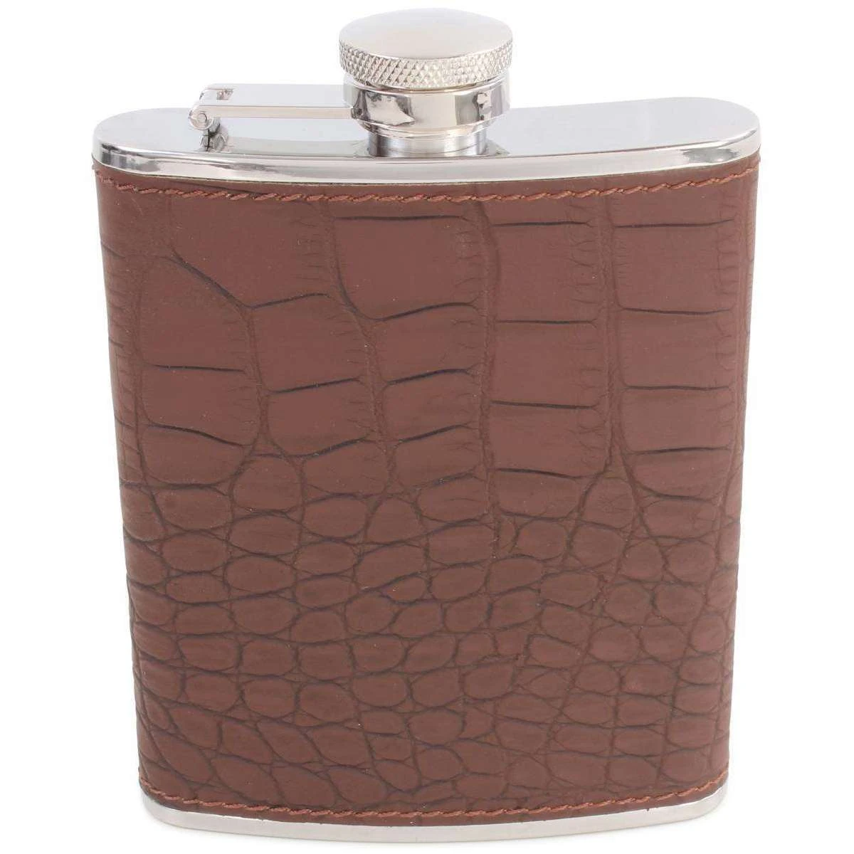 Introducing this men’s 5oz croc stainless steel hip flask by David Van Hagen, it is manufactured from stainless steel in a brown/silver colour. All the hip flasks come complete in a gift box. The David Van Hagen 5oz Croc Stainless Steel Hip Flask – Brown/Silver would make a suitable companion when on the go. It can hold 5oz of your favourite liquor which can be secured inside with its classic captive top to ensure not even a drop is wasted.