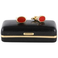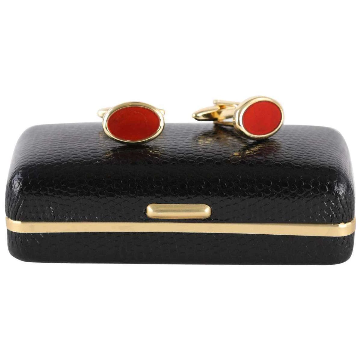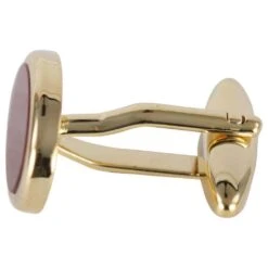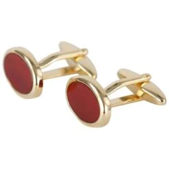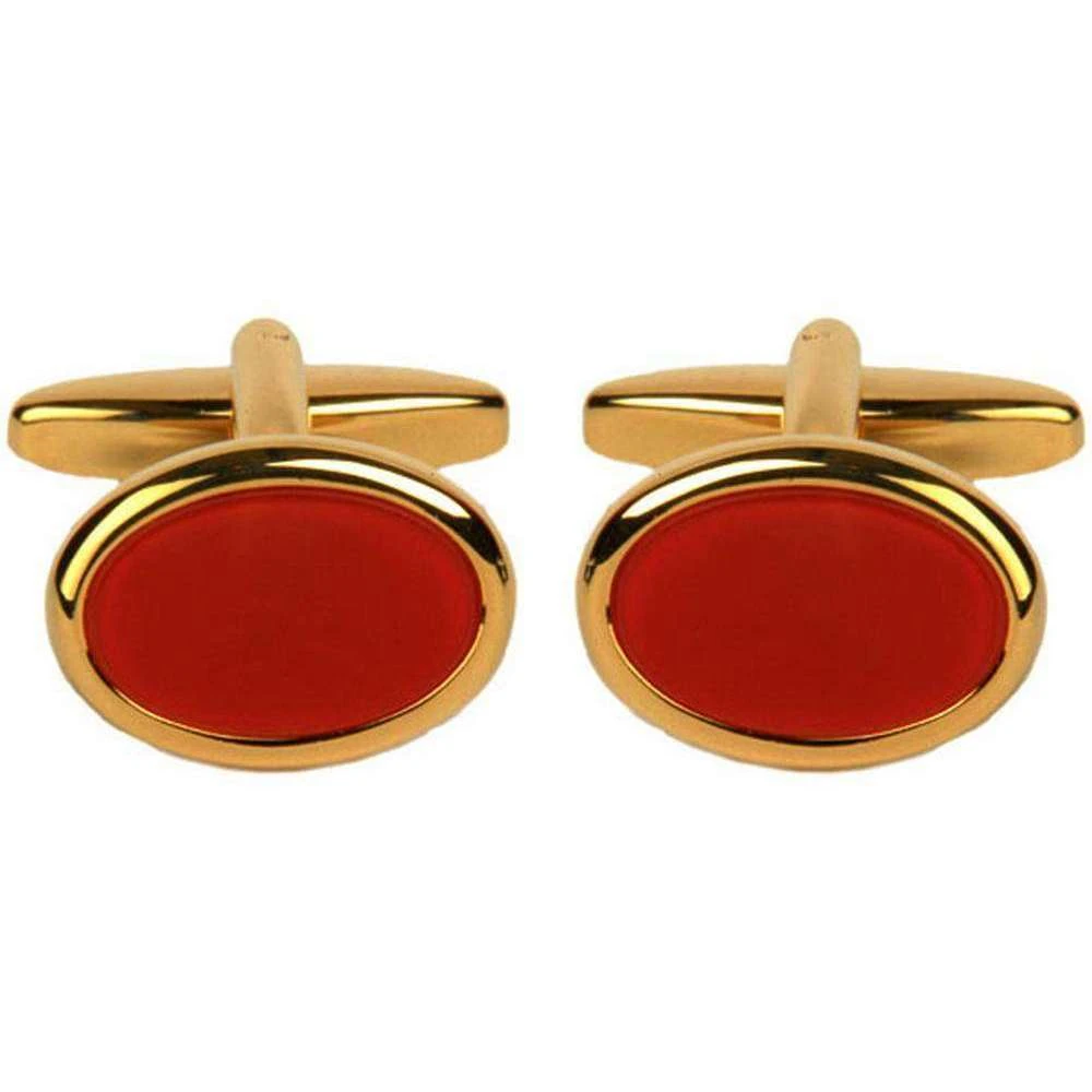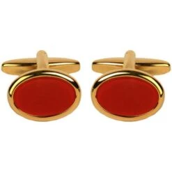 These beautiful oval cufflinks by David Van Hagen are a must have accessory. Each cufflink is inlayed with stunning the semi-precious stone Cornelian, which is accented with a gold plated surround and backing, making them the perfect finishing touch to any outfit. Packaged in a luxury David Van Hagen presentation box, making these cufflinks make a spectacular gift.