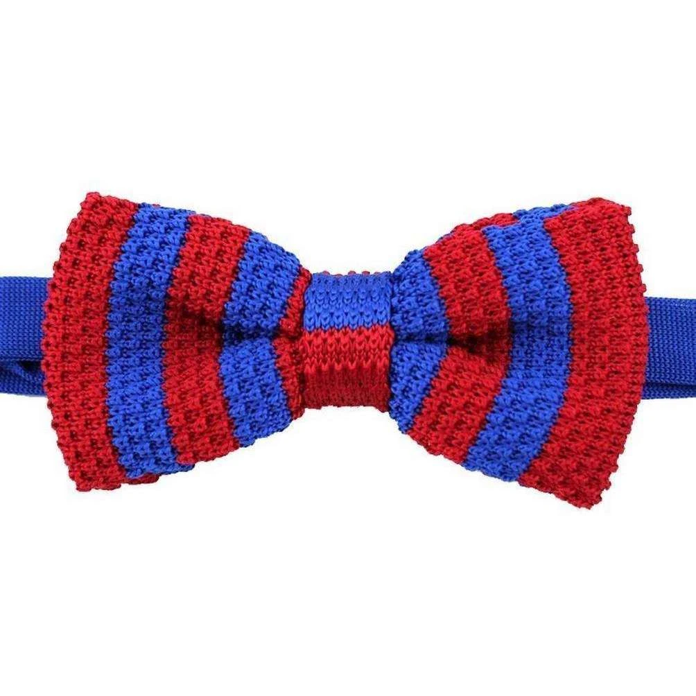 This men’s striped knitted polyester bow tie by the brand David Van Hagen is made from 100% polyester and is showcased in blue. Also the royal blue/red bow tie is designed in a striped pattern, All the bow ties come complete with david van hagen tags. The David Van Hagen Striped Knitted Polyester Bow Tie – Royal Blue/Red will make a lovely addition to any gentleman’s collection as the quirky pattern and contrasting colours will look great when paired with any smart outfit. It has been crafted from quality materials that are long lasting and durable.