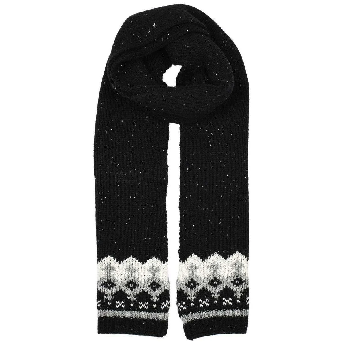 This women’s knitted jacquard scarf has been made from 50% acrylic, 30% wool and 20% nylon, featured in a black colour and is from the brand Dents. It measures 200cm(height) x 27cm(width). Also the black scarf is designed in a plain pattern, All the scarves come complete with dents packaging. The Dents Knitted Jacquard Scarf – Black has a jacquard design at the end of the scarf to give it an added detailing. Would be great for when those colder days arise as it will give you that extra layer of warmth and comfort when you need it most. Will match well with casual clothing for any occasion.