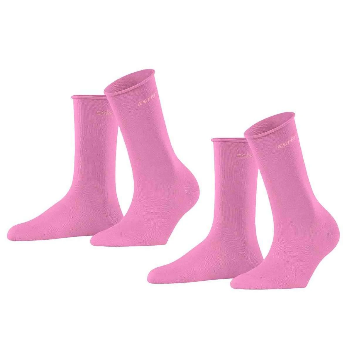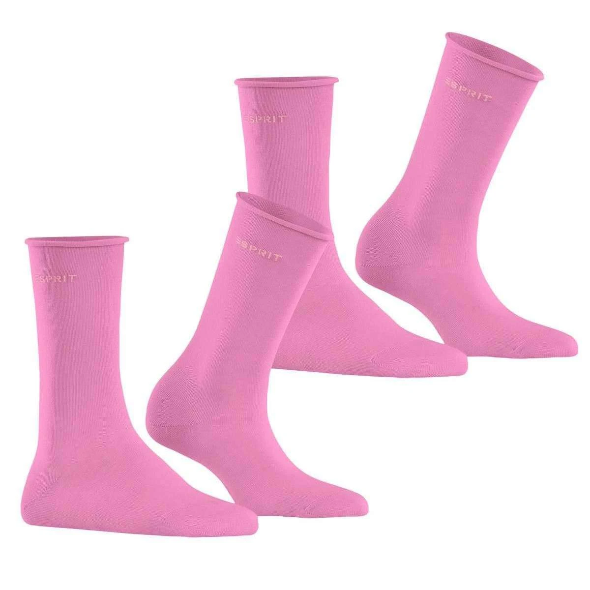 in a rose pink colour. Also the rose pink socks are designed in a plain pattern, It is recommended to wash at 40 degrees to keep these socks in good condition. 2 pack socks are value for money ensuring they are a good buy, All the socks come complete with esprit sock tags. The Esprit Basic Pure 2 Pack Socks – Rose Pink offer 2 pairs of comfortable cotton socks to pair with any outfit! In trendy, fashionable colours these socks are durable thanks to their fabric blend and high cotton content. These basic fine knit socks stretch and conform to the feet for a relaxed, perfect fit for wearing comfort. The rolled cuffs and moisture management features make these socks a must have in your wardrobe.”!=””]})