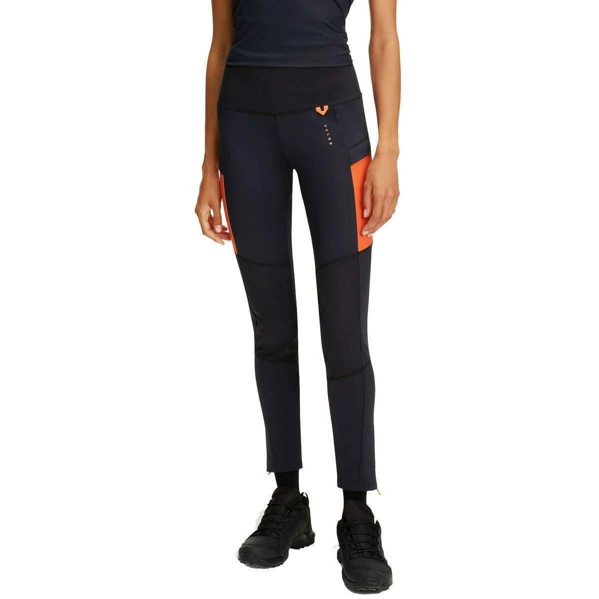 These capsule trekking sport tights for women are fashioned by the brand Falke in a black colour and are made from 88% polyamide and 12% elastane. Also the black/orange training tights are designed in a plain pattern, It is recommended to wash at 40 degrees, do not tumble dry, iron on low, do not dry clean and do not bleach to keep these training tights in good condition. All the training tights come complete with falke packaging. The Falke Capsule Trekking Sport Tights – Black/Orange have high elasticity with a soft stretch and pre-shaped knees for free movement. They offer a reinforced bum and knees with mesh inserts inside to wick away moisture as well as being detailed with reflective elements to ensure visibility. A zipped pocket and an additional pocket with flap offers storage for valuables making these an essential pair for your collection.