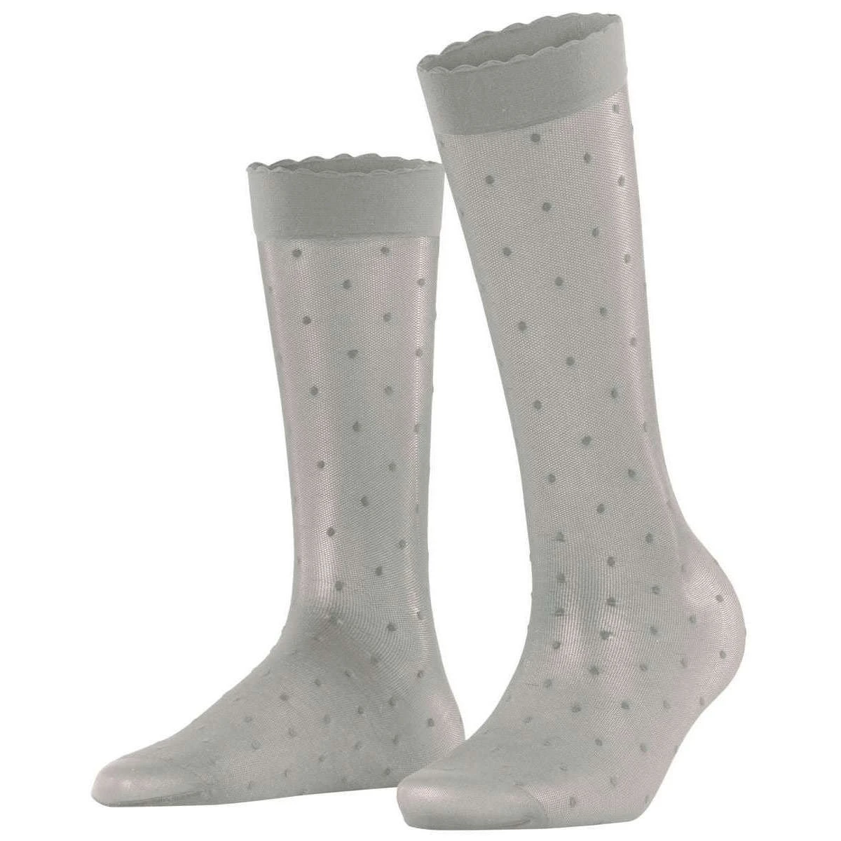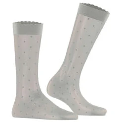 Brought to you by the brand Falke, these lunar grey women’s dot 15 denier knee high socks are made from 92% polyamide and 8% elastane. Also the lunar grey socks are designed in a polka dot pattern, It is recommended to wash at 30 degrees to keep these socks in good condition. All the socks come complete with falke packaging. The Falke Dot 15 Denier Knee High Socks – Lunar Grey are a stylish way to make your fashion statement. Enjoy the fine polka dots appearance produced by a high-quality knitting process for optimum wearing comfort. With the FALKE Perfect Fit and 15 Denier appearance with an elegant modern look, these knee-high socks will match any outfit.