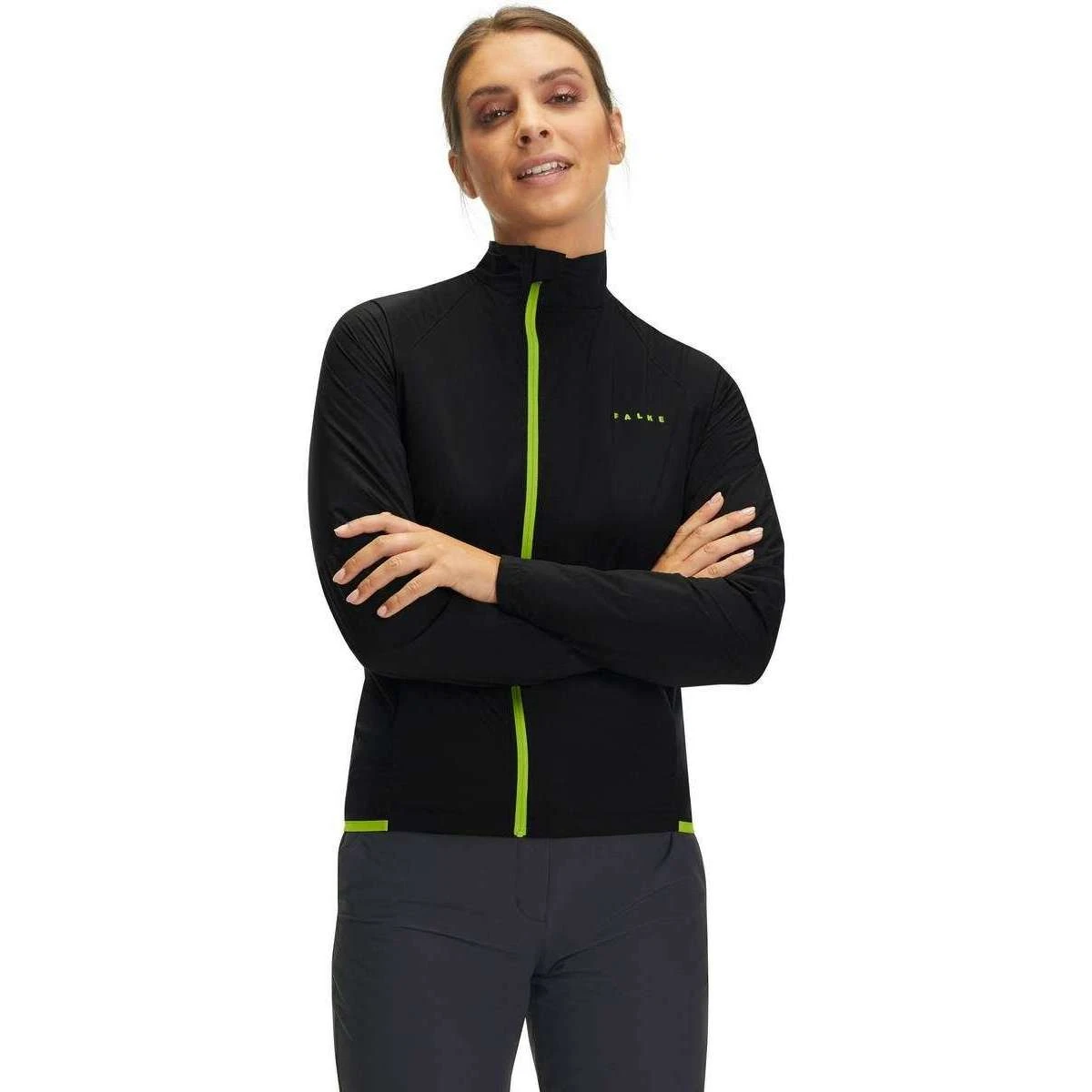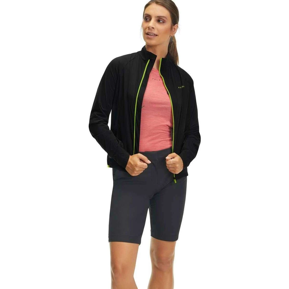 Perfect for women is this Falke black/green light zipped biking jacket, it is also made from 100% polyamide. Also the black/green sports t-shirt is designed in a plain pattern, It is recommended to wash at 30 degrees, do not iron, do not tumble dry, do not bleach, do not dry clean to keep this sports t-shirt in good condition. All the sports t-shirts come complete in falke packaging The Falke Light Zipped Biking Jacket – Black/Green features a protective stand-up collar, extended sleeves, an extended back and reflective elements to ensure greater visibility when riding at night. It has been made using lightweight material and has internal mesh that helps remove moisture quickly to ensure you are kept cool and dry. The overall jacket is windproof and water repellent and can be stowed away inside its own pocket in which the left pocket has a double-sided puller.