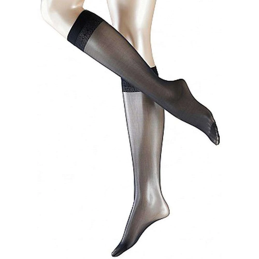 Manufactured from 83% polyamide and 17% elastane are these marine women’s matte deluxe transparent 20 denier knee high tights by the designer Falke. Also the marine tights are designed in a floral pattern, It is recommended to wash at 30 degrees to keep these tights in good condition. All the tights come complete in falke packaging. The Falke Matte Deluxe Transparent 20 Denier Knee High Tights – Marine provide a luxurious transparent matte effect giving your legs a flawless look and feel. They are finished with a silicone coating to ensure that they stay up with ease wear upon wear and 3D knitting technology provides an exquisite mesh structure.
