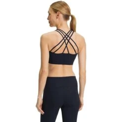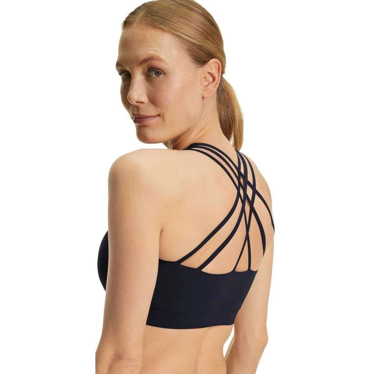 This well made women’s multi-strap sports bra top from Falke comes in a space blue colour and is manufactured from 71% polyamide and 29% elastane. Also the space blue spots bra is designed in a plain pattern, It is recommended to wash at 30 degrees, do not tumble dry, do not dry clean, do not bleach, iron on a low temperature to keep this spots bra in good condition. All the sports bras come complete in falke packaging. The Falke Multi-Strap Sports Bra Top – Space Blue offers not only comfort and practicality with its moisture wicking and body regulating qualities but also a stylish wear with its striking crisscrossing back straps ensuring you both look and feel great. The pads inside the breast area are removeable to allowing you to keep everything fresh after a sweaty workout.