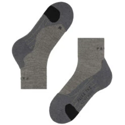 Perfect for men are these Falke kitt mouline brown tk2 explore wool short socks, they are also made from 73% virgin wool and 27% polyamide. Also the kitt mouline brown socks are designed in a plain pattern, It is recommended to wash at 30 degrees to keep these socks in good condition. All the socks come complete with falke sock tags. The Falke TK2 Explore Wool Short Socks – Kitt Mouline Brown offer medium cushioning and extra high merino wool content for stress zone protection wearing comfort. These hiking socks have a rapid moisture wicking 3-layer construction and thermal insulation to keep your feet dry and blister free. With 70% thermoregulating Merino wool mix with odour resistant qualities, you can wear these socks for longer fun in the outdoors. Complete with optimal fit with toe and sole area adapted to each foot.