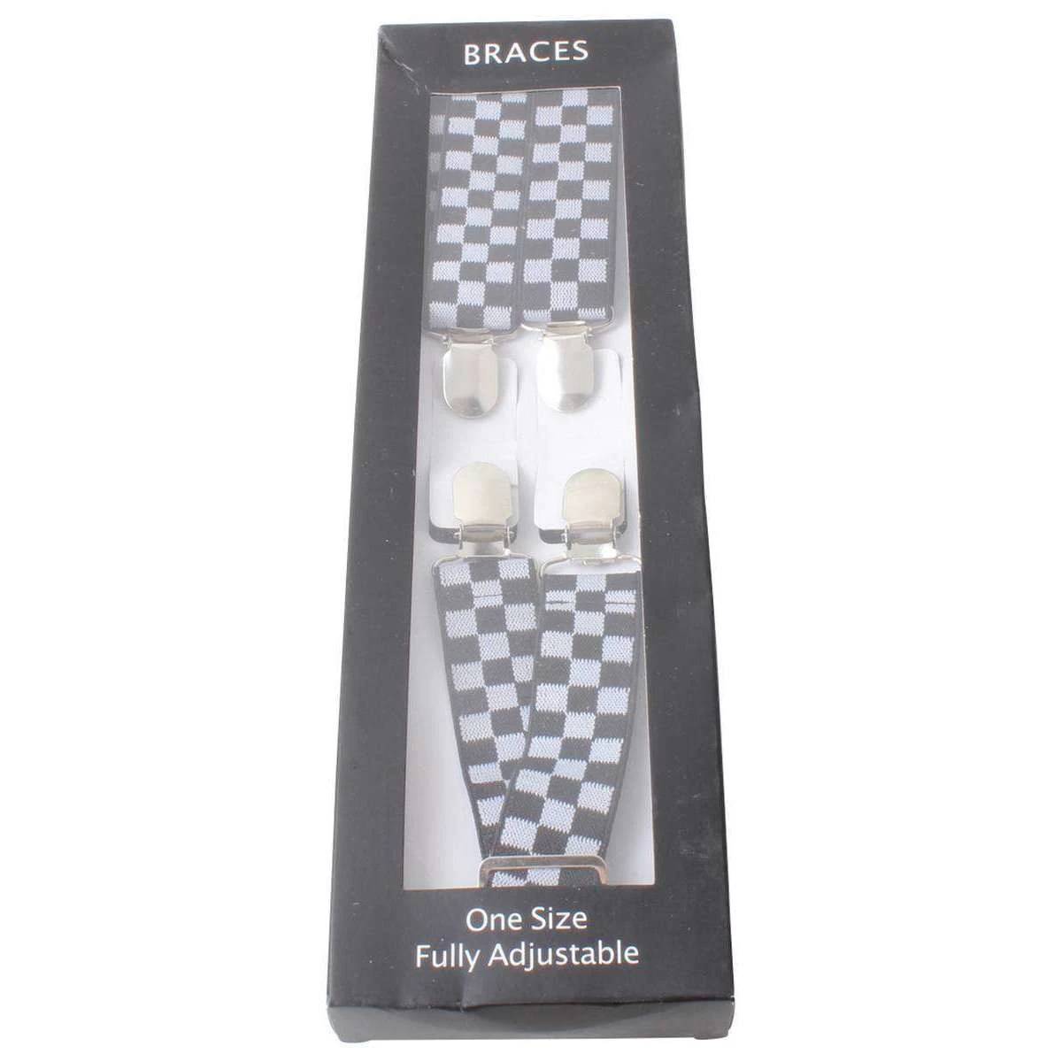 Perfect for men are these Knightsbridge Neckwear black/white checks clip braces, they are also made from 81% polyester and 19% elastane. It measures 91cm(one size fits most length) x 2.5cm(width). Also the black/white braces/suspenders are designed in a checked pattern, It is recommended to do not wash to keep these braces/suspenders in good condition. All the braces/suspenders come complete in a knightsbridge presentation box. The Knightsbridge Neckwear Checks Clip Braces – Black/White are a must have to add to your collection. These have been produced with four clips, two at the front and two at the back to hold you up at all times. These braces are adjustable up to 91cm in length. Perfectly ideal for any occasion.