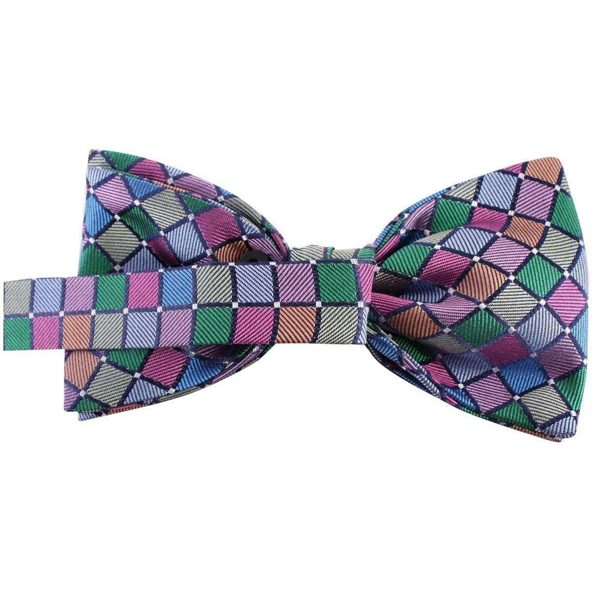 Knightsbridge Neckwear is well-known for their weird and wonderful designs and as you can see this fine bow tie is an example of that. With a diagonal squares design in a beautiful array of colours this exquisite, unique bow tie is sure to impress at any event. Being manufactured from only the finest of silk, Knightsbridge Neckwear have produced a luxury neck piece that will last for a good couple of years. With an adjustable neck strap finding the right size is made easy. The perfect way to spice up any gentlemens attire, this Knightsbridge bow tie comes presented in a clear gift box.