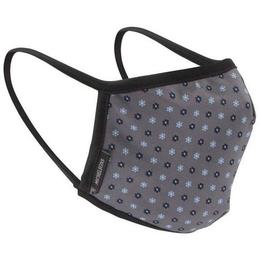 Manufactured from 100% polyester is this grey unisex small flower face covering by the designer Michelsons of London. It measures 13cm(height) x 19cm(width). Also the grey face mask is designed in a floral pattern, It is recommended to machine wash at 60 degrees to keep this face mask in good condition. All the face masks come complete with michelsons of london tags. The Michelsons of London Small Flower Face Covering – Grey has been manufactured with a double-layered design to provide protection and the elasticated ear loops help to ensure a quick and comfortable fit. Displaying an elegant and simple design, this face covering is washable to allow it to be re-used.