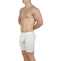 Using white 90% micro modal and 10% lycra spandex, this eliteman boxer brief 6inch leg by Obviously is perfect for men and a must have. Also the white underwear is designed in a plain pattern, It is recommended to cold gentle machine wash at 30 degrees or less, no bleach, low tumble dry, cool iron and no dry cleaning to keep this underwear in good condition. All the underwear comes complete with obviously packaging. The Obviously EliteMan Boxer Brief 6inch Leg – White has been expertly crafted from award winning materials which offer exceptional comfort and now extends up and covers the entire waistband providing you with the utmost comfort. Combining the classic and much loved AnatoMAX pouch with a more modern, sophisticated look, these pair of undies are essential for any gentleman’s collection. The custom 4-way stretch fabric can accommodate any movement and makes itching, scratching and sweating a thing of the past. Being eco-friendly, antibacterial, anti-fungal, hypoallergenic and the having an elasticated waistband ensures you’re all secure yet not restricted giving you luxury wear upon wear.
