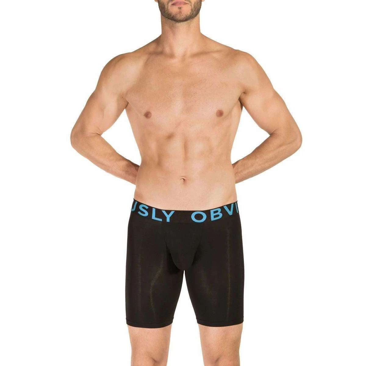 This men’s everyman anatomax boxer brief 9inch leg by the brand Obviously is made from 90% bamboo rayon and 10% lycra and is showcased in black. Also the black underwear is designed in a plain pattern, It is recommended to wash at 30 degrees, low tumble try, use a cool iron and do not dry clean to keep this underwear in good condition. All the underwear comes complete in obviously packaging. The Obviously EveryMan AnatoMAX Boxer Brief 9inch Leg – Black gives guys with larger and muscular legs the upmost of comfort when wearing. Preventing chafing when running, cycling or exercise in general, this is the most ideal buy. Perfect for everyday wear, this longer length boxer brief prevents riding up, so wearing all day and all night wont be an issue. Featuring anatomical pouch technology, you will have natural positioning rather than an uncomfortable fit which reduces heat build-up and a squashed feeling. The material is eco-friendly, anti-bacterial, anti-fungal and hypo allergenic and the 4 way stretch fabric allows you to move freely.