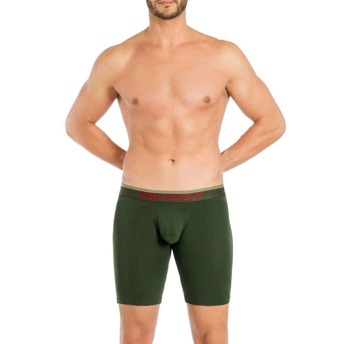 This men’s freeman anatofree boxer brief 6inch leg has been made from 100% micro modal lycra, featured in a green colour and is from the brand Obviously. Also the pine green underwear is designed in a plain pattern, It is recommended to cold gentle wash on 30 degrees, use tumble dryer on low setting, do not dry clean and do not bleach to keep this underwear in good condition. All the underwear comes complete in obviously packaging. The Obviously FreeMan AnatoFREE Boxer Brief 6inch Leg – Pine Green offers optimal comfort in a very popular 6 inch length which is certain to impress wear upon wear. Super soft against the skin, these boxer briefs will be a stand out from the rest in your undies drawer as their eco friendly, antibacterial, anti fungal and hypoallergenic material offers superb support as well as comfort. They have an elasticated waistband for free movement and branding for that finishing touch.