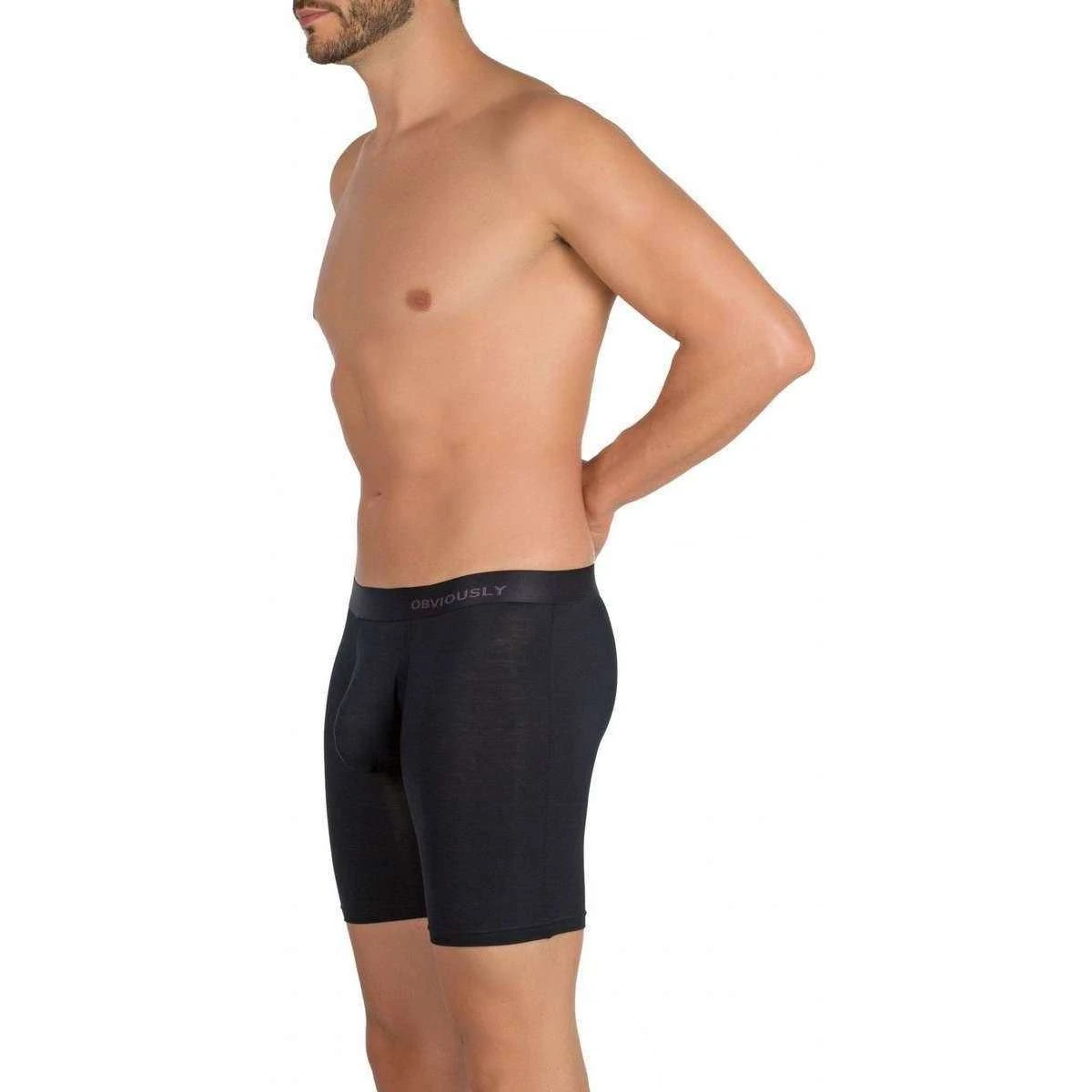 This men’s primeman anatomax boxer brief 6inch leg by the brand Obviously is made from 90% micro modal and 10% lycra and is showcased in black. Also the black underwear is designed in a plain pattern, It is recommended to wash at 30 degrees and low tumble dry to keep this underwear in good condition. All the underwear comes complete with obviously packaging. The Obviously PrimeMan AnatoMAX Boxer Brief 6inch Leg – Black allows you to have parallel comfort throughout the day as the fabric blend will be silky smooth on your skin and is also moisture wicking. The signature AnatoMAX pouch will be sure to keep your bits in place and the waistband stays secure around your hips so there is no need to re-adjust. The 4 way stretch fabric will flex with your body giving you the ultimate freedom of movement; functionality as well as comfort is paramount.