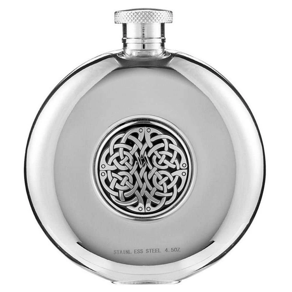 This men’s 4oz celtic porthole hip flask has been made from stainless steel, featured in a silver colour and is from the brand Orton West. It measures 8.8cm(diamater) x 2.7cm(width). All the hip flasks come complete in a presentation box. The Orton West 4oz Celtic Porthole Hip Flask – Silver gives off a smooth and sleek effect with its shiny polished finish. This hip flask features a unique design which will be guaranteed not to disappoint. The front of the flask has been manufactured with a small Celtic design, and on the back is a small see through section to see how much or how little you have left. Make this a flawless gift to any stylish gentleman.