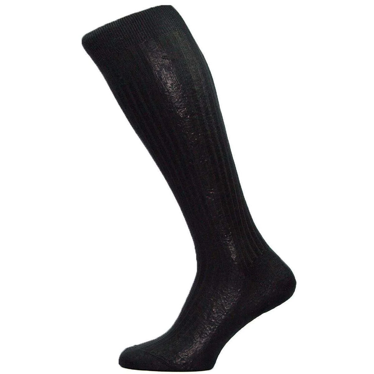 These gorgeous over the calf socks have been crafted from 100% silk that is obtained from the cocoons of the Mulberry silkworm, resulting in a fibre that is strong and flexible. Superbly stylish in black Pantherellas Baffin socks feature a 5×3 rib design and a just the pair for any gentleman looking to finish their attire with taste and class. They are the ideal pair for business wear or formal occasions as they are certain to impress, keeping your feet fresh and comfortable throughout the day.