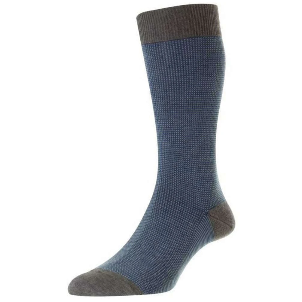 Brought to you by the brand Pantherella, these mid grey mix men’s tewkesbury 3 colour birdseye cotton fil d’ecosse over the calf socks are made from 65% cotton fil d’ecosse and 35% nylon. Also the mid grey mix socks are designed in a houndstooth pattern, Pantherella have made these tewkesbury 3 colour birdseye cotton fil d’ecosse over the calf socks in Britain. It is recommended to hand wash only, do not iron, do not bleach, do not tumble dry, do not dry clean to keep these socks in good condition. All the socks come complete with pantherella packaging. The Pantherella Tewkesbury 3 Colour Birdseye Cotton Fil D’Ecosse Over the Calf Socks – Mid Grey Mix will be the perfect long socks for you! Renowned for being the finest socks in the world these durable and reliable Tewkesbury socks will be a sophisticated addition to any of your outfits. Featuring a seamless toe for maximum comfort as well as being hand finished for a premium quality finish, these classy socks with a contrasting top, heel and toe will be a great addition to your sock drawer.