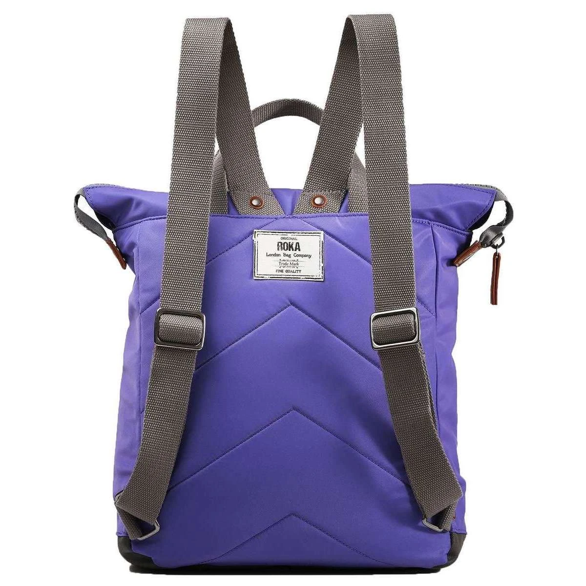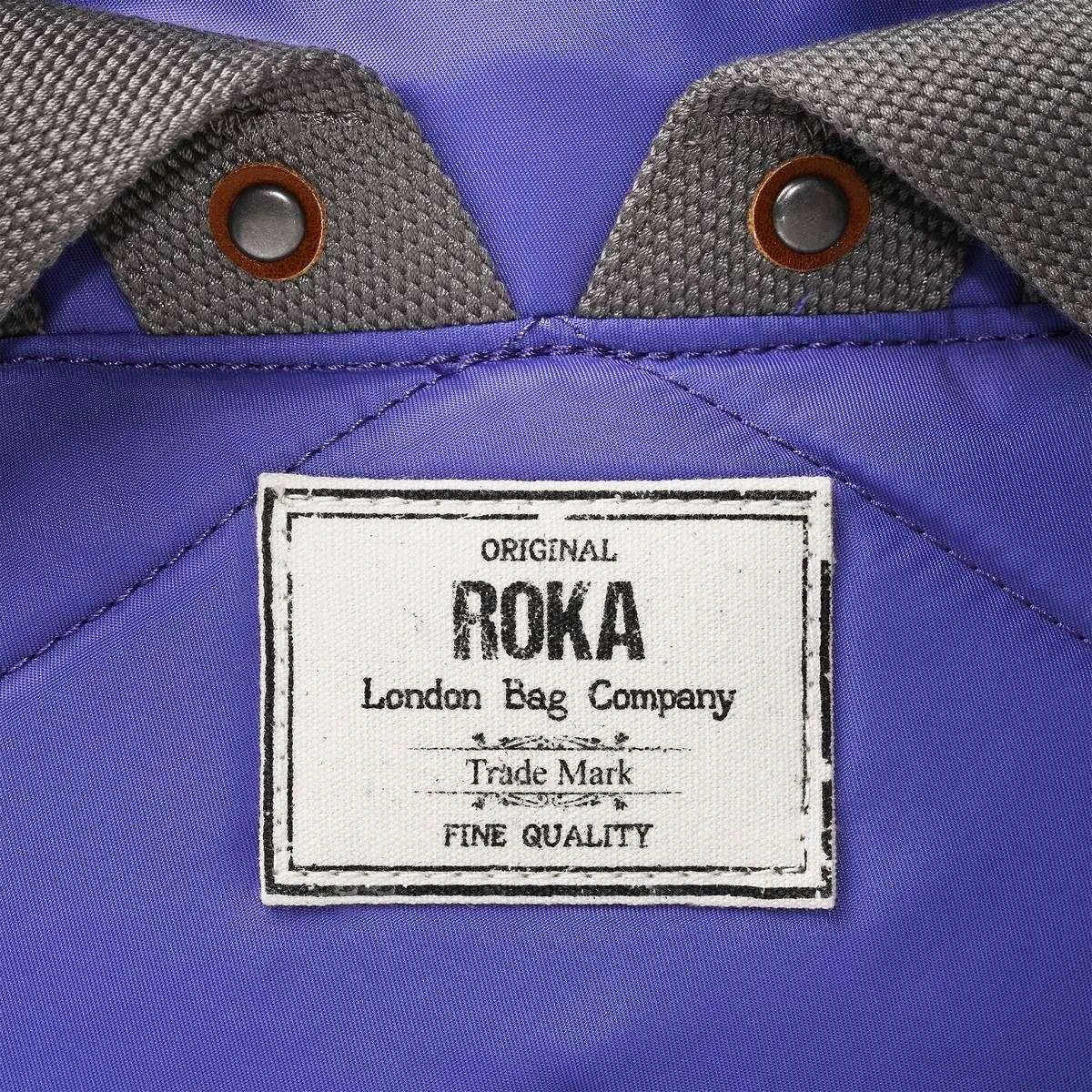 This bantry b medium sustainable nylon backpack for men or women is fashioned by the brand Roka in a purple colour and is made from 100% weather resistant recycled nylon (triple coated). It measures 40cm(height) x 30cm(width) x 12cm(depth). All the bags come complete with roka packaging. The Roka Bantry B Medium Sustainable Nylon Backpack – Peri Purple has four straps for being carried on your back or by your side. This backpack is perfect for your daily needs as it features a zipped front pocket, secure inside pocket, and a padded pocket for your tablet/laptop. There is also extra room for your notebooks, water bottles and more, perfect for when on the go. Crafted from rPET sustainable nylon that is used in plastic bottles which usually ends up in landfill or in the ocean, it has been recycled to give the material new life and protect oceans, it is also lightweight and smooth. Vegan friendly and water-resistant, it is the ultimate choice of backpack.