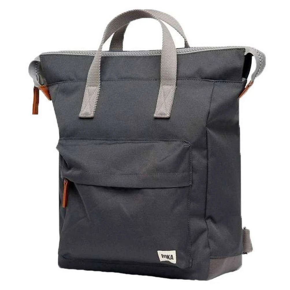This unisex bantry b small sustainable canvas backpack has been made from polyethylene terephthalate, featured in a grey colour and is from the brand Roka. It measures 32cm(height) x 26cm(width) x 10cm(depth). All the bags come complete with roka packaging. The Roka Bantry B Small Sustainable Canvas Backpack – Carbon Grey front zipped pocket is just the right size for those items that need to be kept handy. This backpack has been manufactured from 12 to 15 recycled bottles making a difference in the world one step at a time. Being weather resistant and durable, this can be taken around in any weather to hold all your essentials, even precious ones with its padded inside pocket and zipped compartment. There are two ways to carry as it features 4 straps, 2 of which can be adjusted.