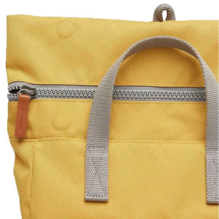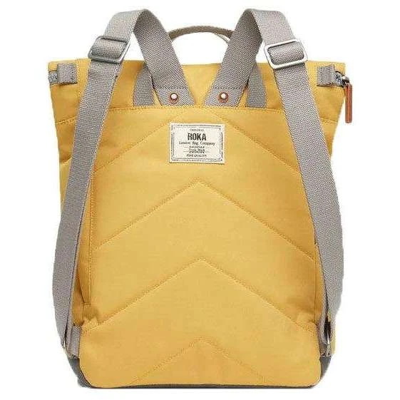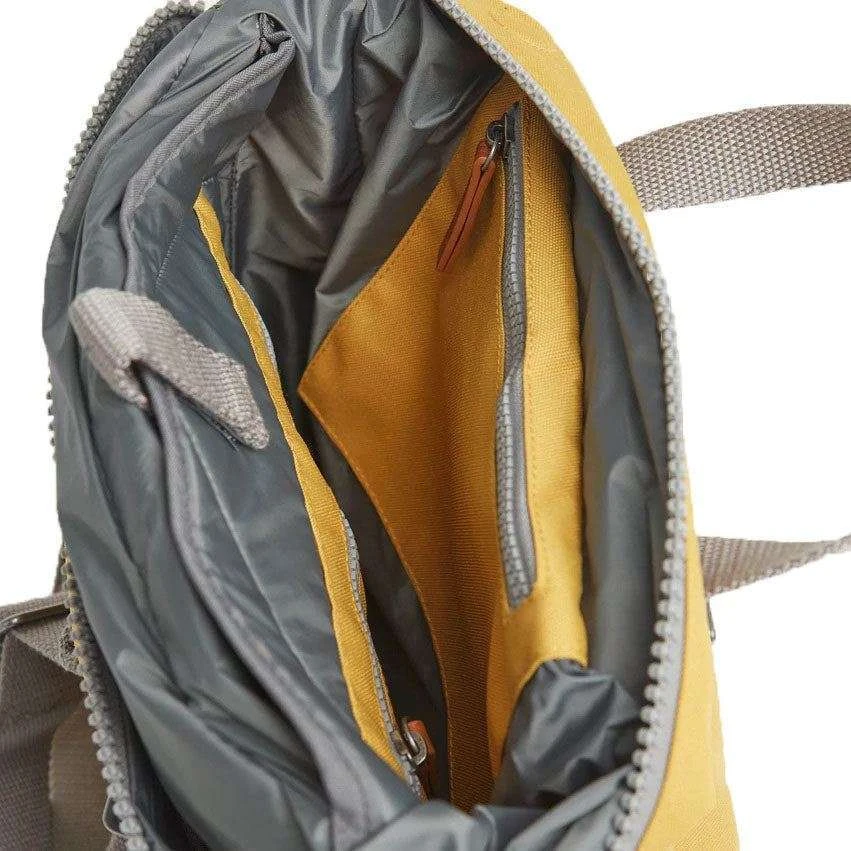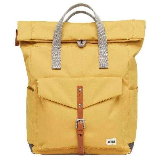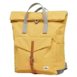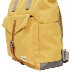 This canfield c medium sustainable canvas backpack for men or women is fashioned by the brand Roka in a yellow colour and is made from 100% weather resistant recycled canvas (triple coated). It measures 42cm(height) x 30cm(width) x 12cm(depth). All the bags come complete with roka biodegradable packaging. The Roka Canfield C Medium Sustainable Canvas Backpack – Flax Yellow has a secure and innovative closing system consisting of a zip and magnetic hold to keep all your valuables safe and secure. It also has a vegan leather-like strap closure on the front pocket and a secret pocket for your wallet for added protection. Featuring two side pockets for your water bottles and room for a 15” laptop as well as all the other zipped compartments, it is the perfect all round backpack. Crafted from rPET material that is used in plastic bottles which usually ends up in landfill or in the ocean, it has been recycled to give the material new life and protect oceans, it is then coated to make this water resistant. No matter how long your commute is or the weather you face this bag is ideal for any situation and will handle them with ease.