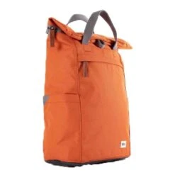Introducing this unisex finchley a medium sustainable canvas backpack by Roka, it is manufactured from 100% weather resistant recycled canvas (triple coated) in a atomic orange colour. It measures 42cm(height) x 28cm(width) x 13cm(depth). All the bags come complete with roka packaging. The Roka Finchley A Medium Sustainable Canvas Backpack – Atomic Orange holds and organises an impressive number of items, all within the roll-top design. Water-resistant and crafted from rPet materials, this backpack is sustainable, vegan and kind to the environment. There is a lightly padded laptop pocket that will fit your devices up to 17″ and the extra storage space holds a change of clothes, water bottle, snacks and more! The zip pocket on the front is perfect for things you need to access quickly whilst on the move. The back padding and cotton straps provide comfort to the back and shoulders for comfortable carrying, perfect for everyday use.