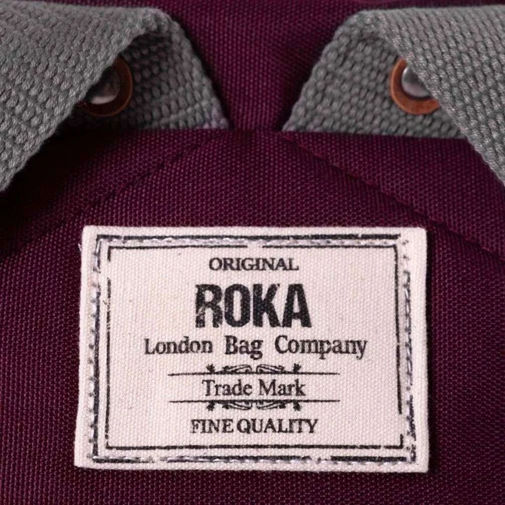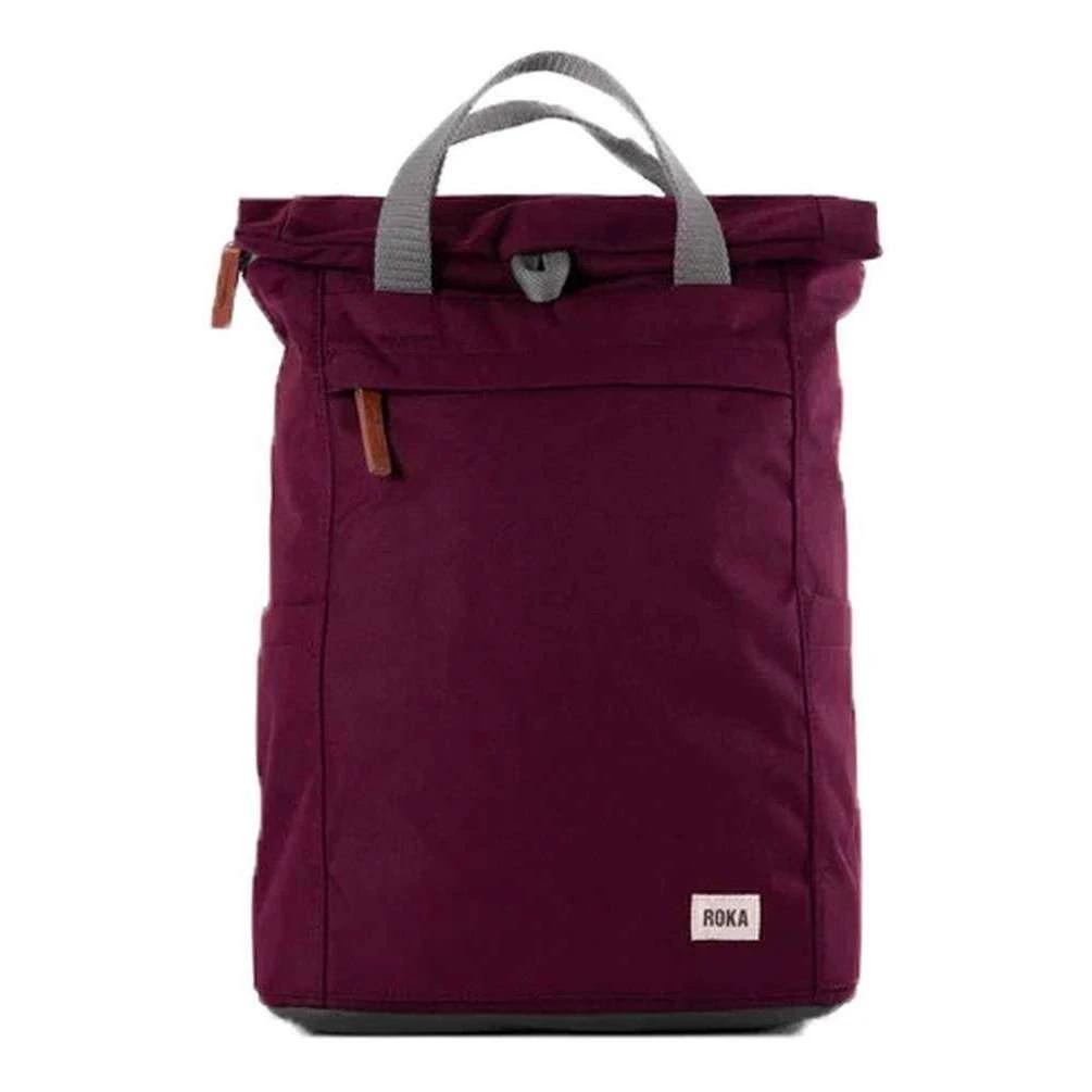 This well made unisex finchley a medium sustainable canvas backpack from Roka comes in a sienna burgundy colour and is manufactured from 100% weather resistant recycled canvas (triple coated). It measures 42cm(height) x 28cm(width) x 13cm(depth). All the bags come complete with roka packaging. The Roka Finchley A Medium Sustainable Canvas Backpack – Sienna Burgundy holds and organises an impressive number of items, all within the roll-top design. Water-resistant and crafted from rPet materials, this backpack is sustainable, vegan and kind to the environment. There is a lightly padded laptop pocket that will fit your devices up to 17″ and the extra storage space holds a change of clothes, water bottle, snacks and more! The zip pocket on the front is perfect for things you need to access quickly whilst on the move. The back padding and cotton straps provide comfort to the back and shoulders for comfortable carrying, perfect for everyday use.