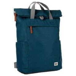 This finchley a medium sustainable canvas backpack for men or women is fashioned by the brand Roka in a blue colour and is made from 100% weather resistant recycled canvas (triple coated). It measures 42cm(height) x 28cm(width) x 13cm(depth). All the bags come complete in roka packaging. The Roka Finchley A Medium Sustainable Canvas Backpack – Teal holds and organises an impressive number of items, all within the roll-top design. Water-resistant and crafted from rPet materials, this backpack is sustainable, vegan and kind to the environment. There is a lightly padded laptop pocket that will fit your devices up to 17″ and the extra storage space holds a change of clothes, water bottle, snacks and more! The zip pocket on the front is perfect for things you need to access quickly whilst on the move. The back padding and cotton straps provide comfort to the back and shoulders for comfortable carrying, perfect for everyday use.