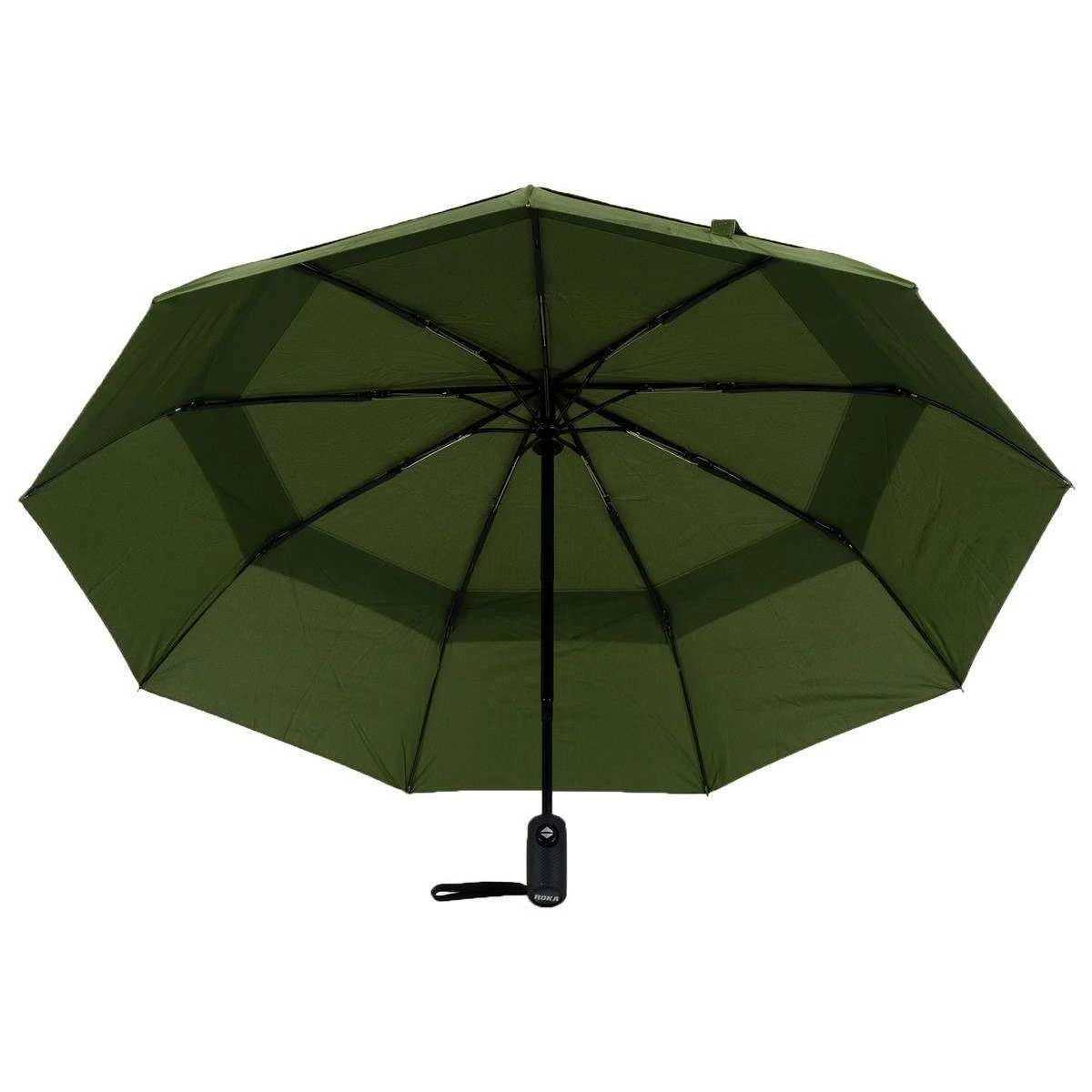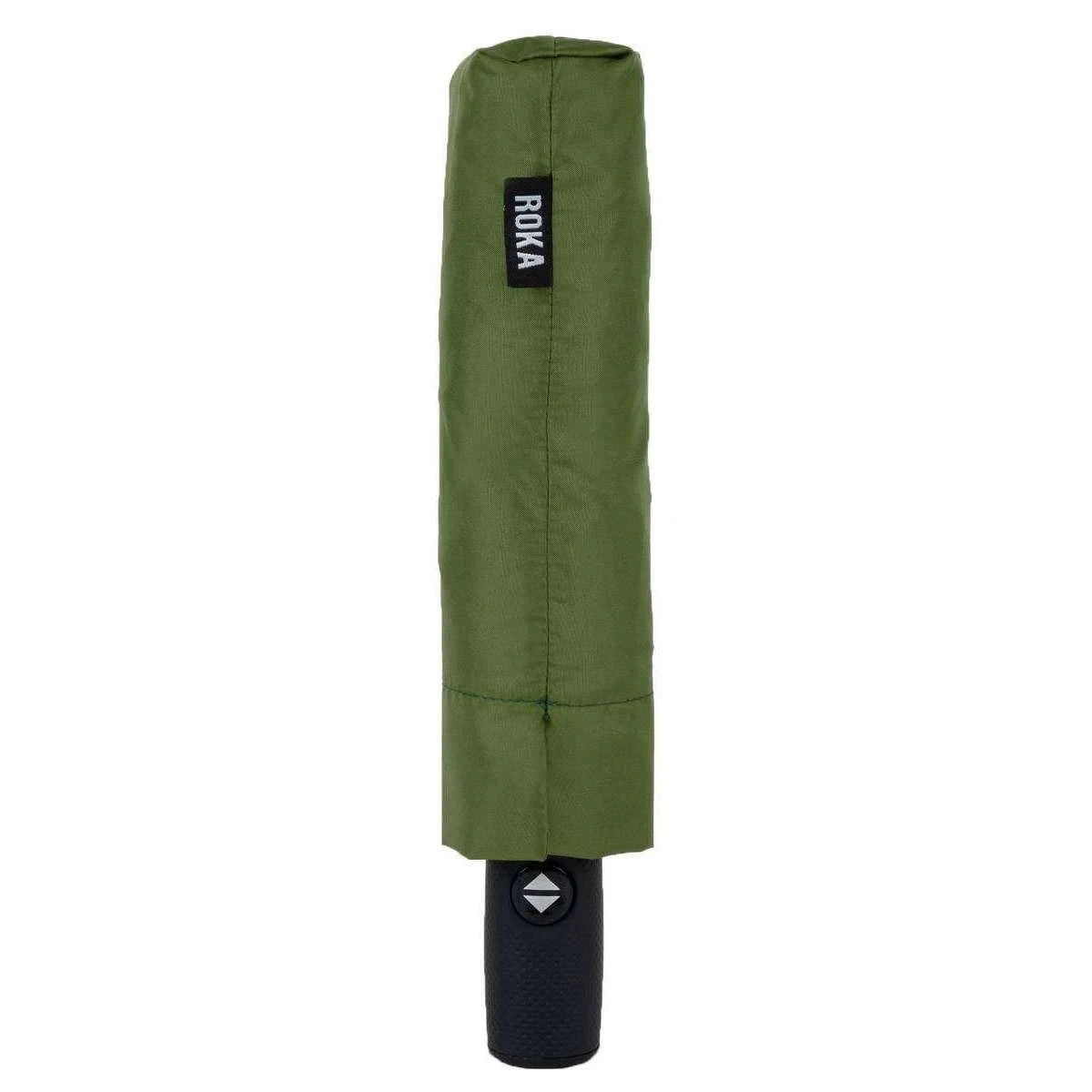 This unisex waterloo recycled nylon umbrella by the brand Roka is made from 100% weather-resistant recycled nylon (triple-coated) and is showcased in green. It measures 52cm(height) x 92cm(width). Also the avocado green umbrella is designed in a plain pattern, All the umbrellas come complete with roka packaging. The Roka Waterloo Recycled Nylon Umbrella – Avocado Green keeps you covered rain or shine! Lightweight and windproof, this stylish, easy to carry umbrella has a rubberised handle that gives you that extra grip. Closed this umbrella measures 30cm x 5cm, at the touch of a button, it opens to 92cm wide x 52cm high. With weather-resistant recycled nylon, dual layers with air vents, this umbrella comes in a pouch with Velcro closing. For protection in all conditions trust Waterloo to carry you through!