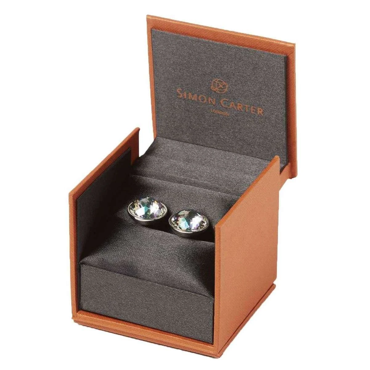 Using silver imitation rhodium plated metal and crystals, these crystal paradise cufflinks by Simon Carter are perfect for men and a must have. All the cufflinks come complete with simon carter presentation box. The Simon Carter Crystal Paradise Cufflinks – Silver/Clear are the classic crystal cufflinks that you’ve been looking for. The multi-faceted dome provides a bold and striking look that will be the perfect addition to any outfit of yours. The cut adds an infinitely deep and holographic effect that will pick up on any colour and add a lively touch to your outfit.
