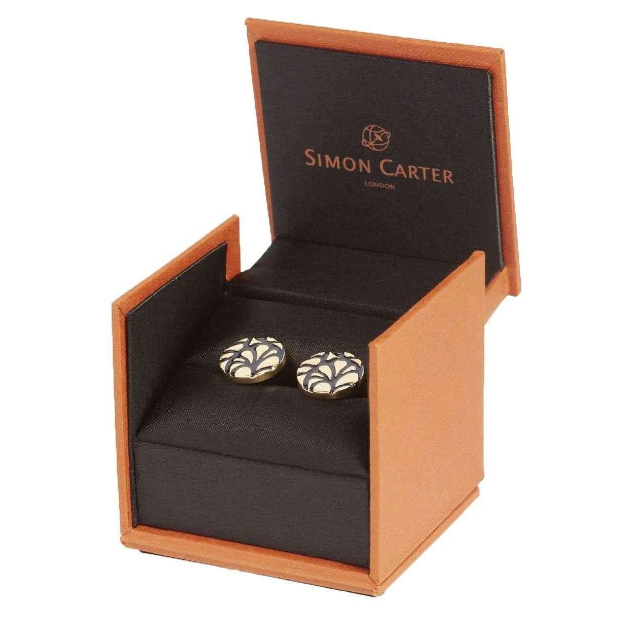 Introducing these men’s hibiscus cufflinks by Simon Carter, they are manufactured from imitation gold plated metal and enamel in a gold/navy colour. All the cufflinks come complete with simon carter presentation box. The Simon Carter Hibiscus Cufflinks – Gold/Navy are perfect for anyone looking for an abstract and versatile option. These gold-plated cufflinks provide a stylish look that is sure to attract attention and become a new favourite of yours!