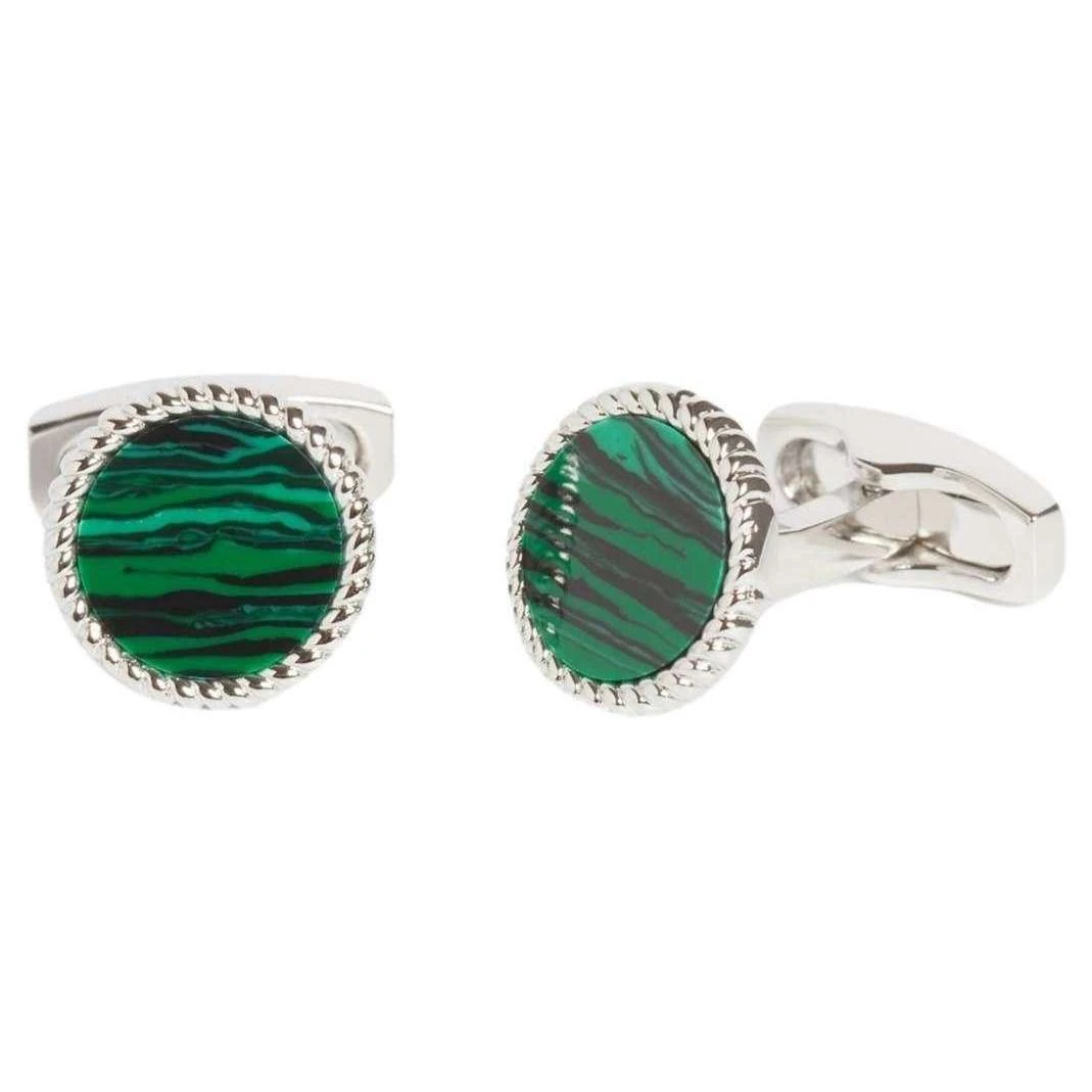 These malachite rope edge cufflinks for men are fashioned by the brand Simon Carter in a green colour and are made from imitation rhodium plated metal and malachite. All the cufflinks come complete in a simon carter presentation box. The Simon Carter Malachite Rope Edge Cufflinks – Green give off an amazing effect with their flawless style. These cufflinks have a design that is usually found on furniture, architecture and clothing such as buckles so they will be suited for any gentleman. Created with a flawless deep colour, these would make you stand out from the crowd for all the right reasons.