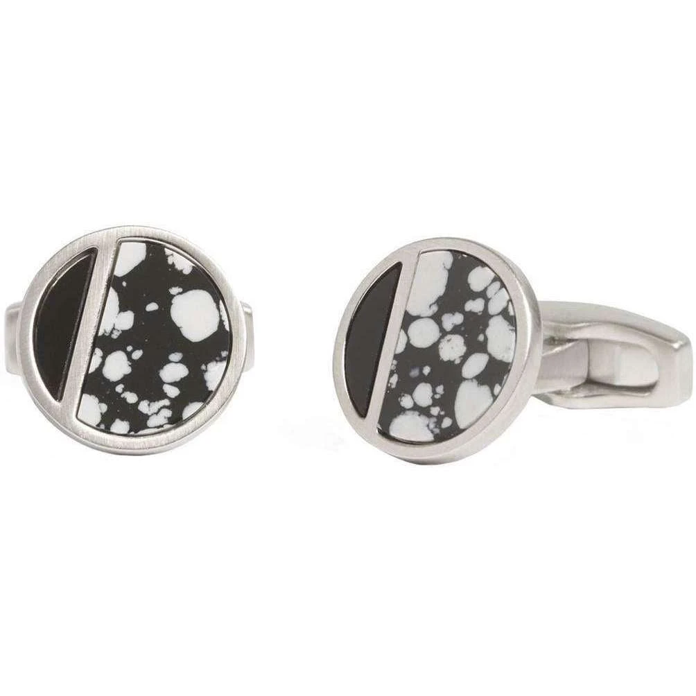 Designer Simon Carter have brought you these men’s imitation rhodium plated metal, obsidian and onyx cufflinks using silver/black tones. All the cufflinks come complete in a simon carter presentation box. The Simon Carter Onyx and Obsidian Eclipse Cufflinks – Silver/Black showcase a clean, round design with semi-precious snowflake obsidian and onyx, bringing an elegant flair to any plain shirt cuffs. Featuring a sleek and polished finish, these luxurious cufflinks have been professionally crafted to a high standard and can be worn with work/formal attire.